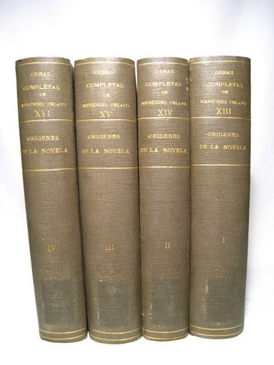 MENENDEZ PELAYO, MARCELINO ORIGENES DE LA NOVELA (4 vols.) (OBRAS COMPLETAS XIII-XIV-XV-XVI) Referencia: 20286.