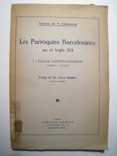 DE P. COLLDEFORNS, FRANCESC LES PARROQUIES BARCELONINES EN EL SEGLE XIX. 1a EPOCA CONSTITUCIONALISTA (1820-1824) Referencia: 21394.