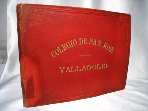 Ed. COLEGIO SAN JOSE; Valladolid. 1895. Castellano. Tela roja con relieves y dorados. 17x22 cms. 10 pags. Preciosa obra de gran interés histórico. Compuesta de las 10 primeras fotos que se le hicieron al colegio a finales del siglo XIX. Dos fotos hablan de los alrededores del colegio y el resto del interior. Si bien el paso del tiempo ha dejado roces y decoloración en la cubierta y algunos puntos de óxido en las fotos, por el contrario, ese mismo tiempo dota a la obra de gran interés histórico-gráfico.. COLEGIOS. LOCAL. FOTOGRAFIA.