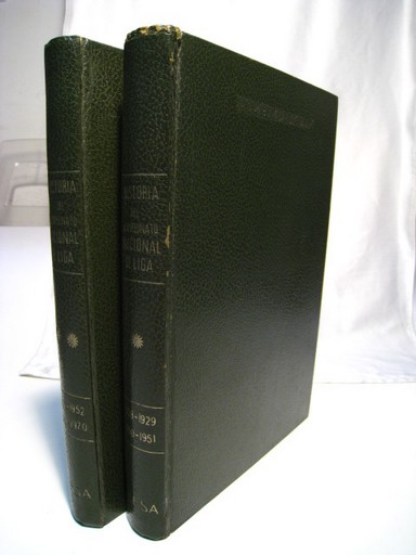 Ed. EFSA; Valencia. 1969. Castellano. Piel con grabados dorados en lomo. 2 vols. 28x20 cms. 1120 pags. Tomo I: temporadas 1928-29 a 1950-51 y el tomo II: temporadas de 1951-52 a 1969-70. Profusamente ilustrada con fotografias a color y en blanco y negro intercaladas en el texto y infinidad de datos estadisticos y tecnicos de la liga. Buen estado de conservacion.. FUTBOL. HISTORIA.