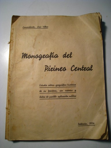 VILLAR, Luis MONOGRAFIA DEL PIRINEO CENTRAL. Estudio critico geografico, historico de su frontera, con normas y datos de posible aplicación militar Referencia: 25063.